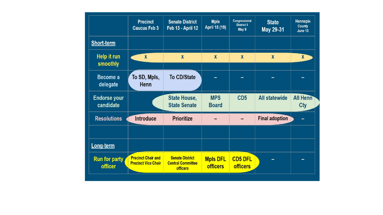 At this time in our beloved cities, we are called on to exercise our democratic muscles. Over the next few months, DFLers across the state will be gathering to 1) endorse candidates for office; 2) consider resolutions that will create the DFL’s official platform; and 3) elect party officers at every level. And it all starts with precinct caucuses on Tuesday, February 3rd. Doors open at 6:30 pm, and caucuses start at 7.